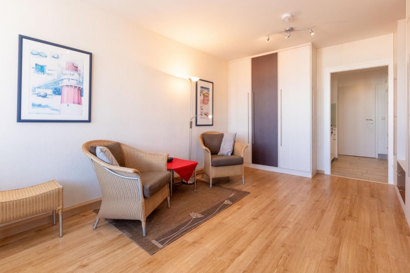 Erleben Sie Borkum hautnah. Modernes 30qm Ferienappartement für 2 Personen in 1. Meereslinie und seitlichem Meerblick. Ihr Feriendomizil liegt in der 4. Etage im beliebten Haus Seeblick in der Bismarckstr. Die Ferienwohnung verfügt über einen großzügigen Wohnbereich mit hochwertigem Schrankbett, einer modernen Küche, einen großen Balkon sowie ein freundliches, hell gefliestes Bad mit Dusche und WC.